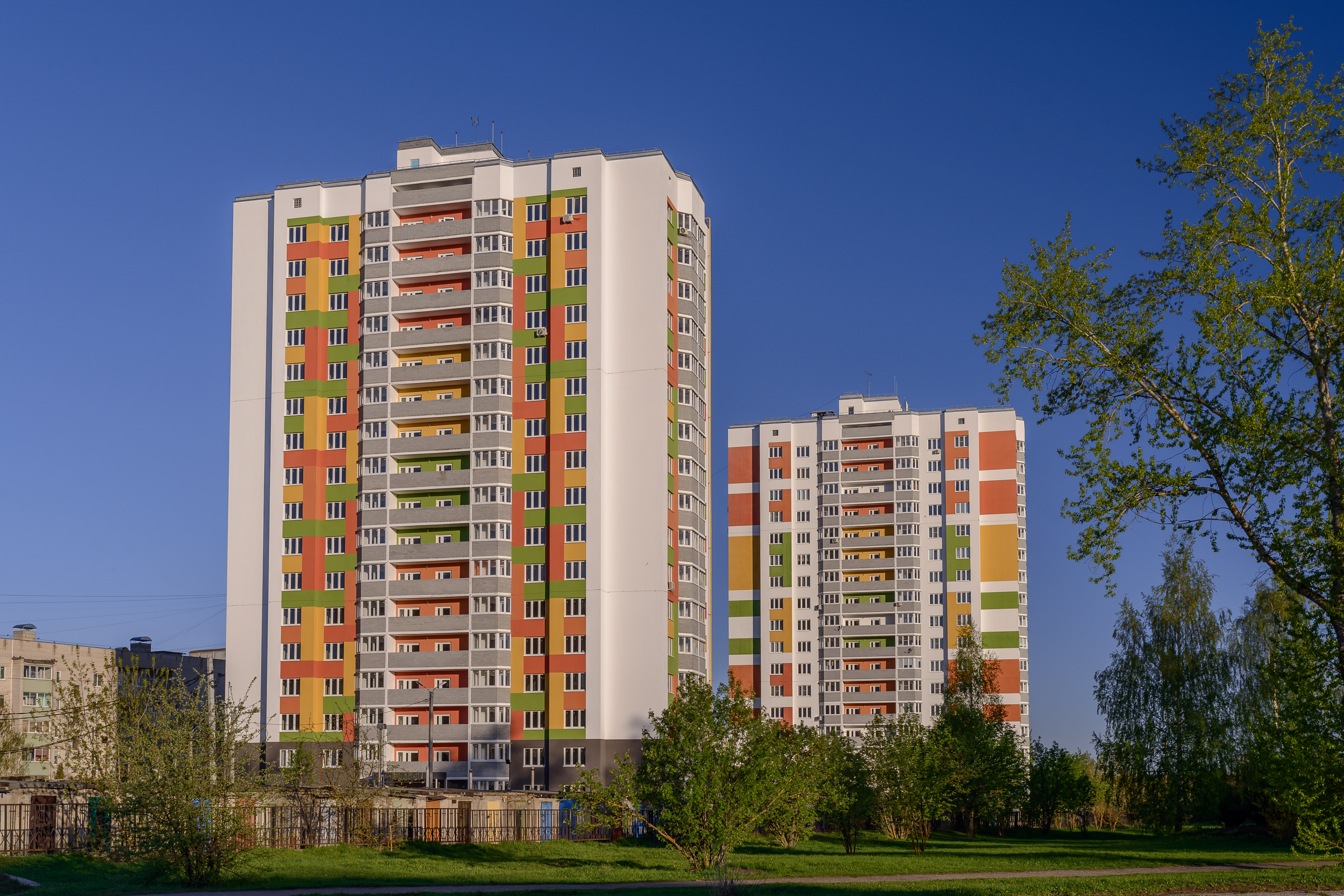 Весь комплекс из 3 домов имеет огороженную территорию с 2 выездами: На ул. Строителей и на ул. С.Лазо. Калитки оборудованы домофонами.